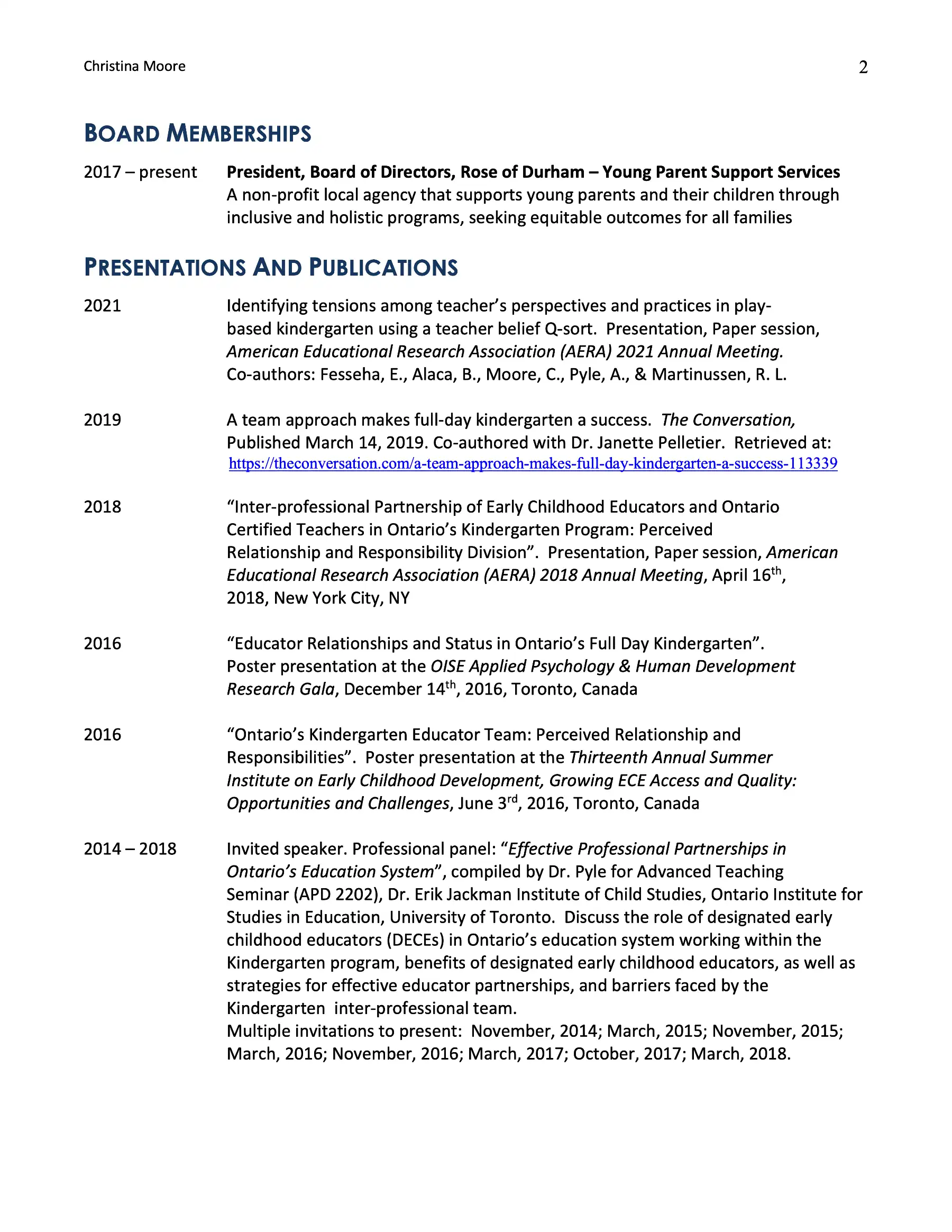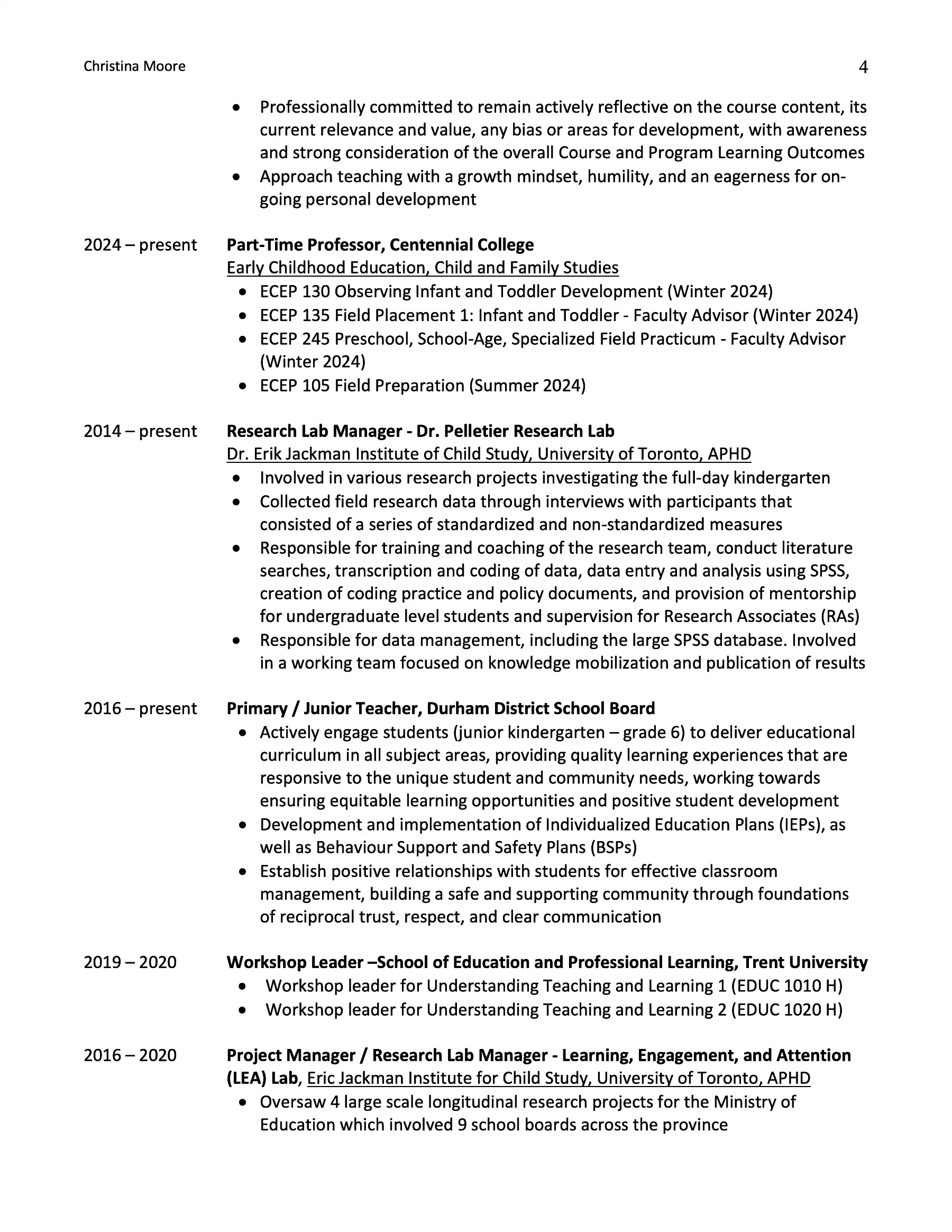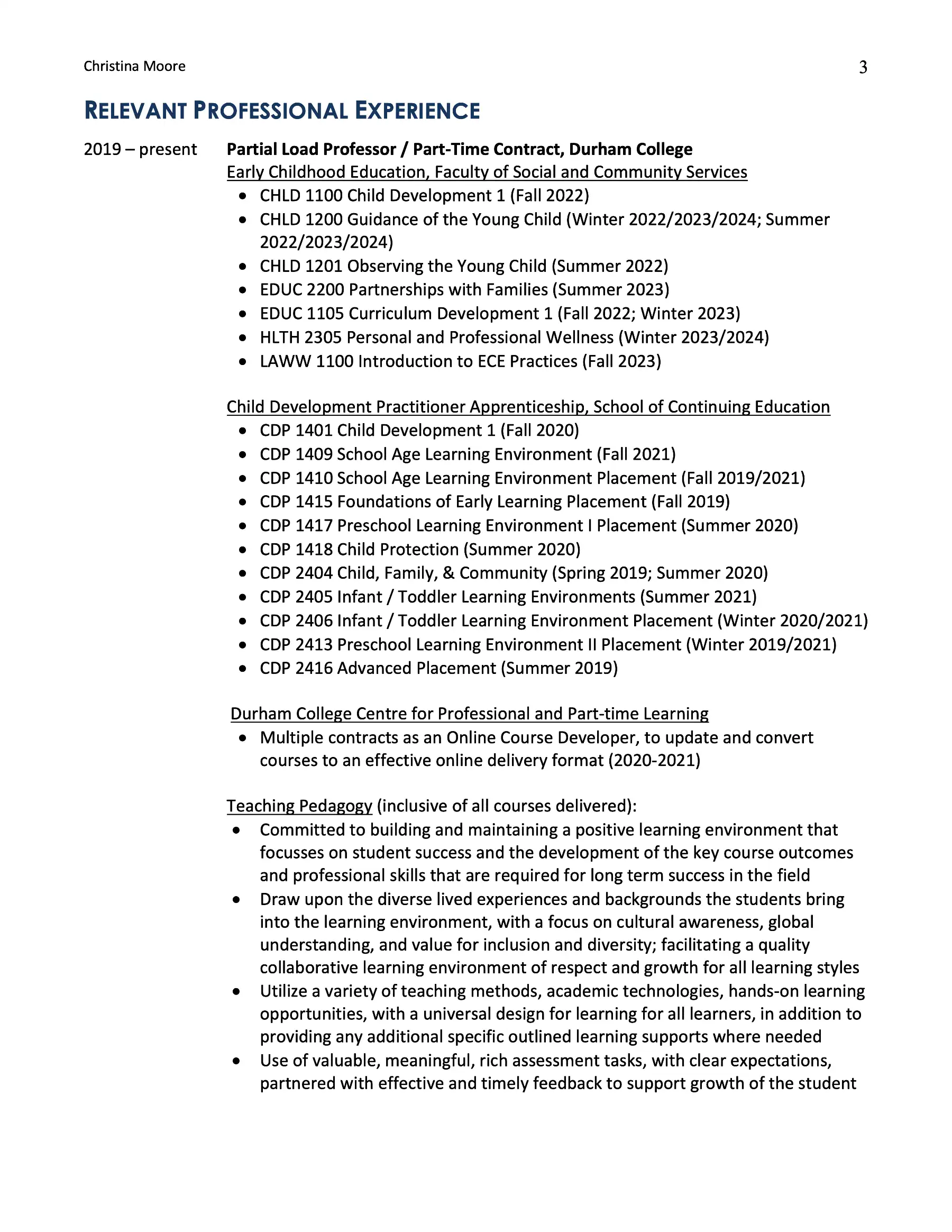 If you are having any trouble, this CV document can be requested in a more accessible format through email: christina.moore@durhamcollege.ca